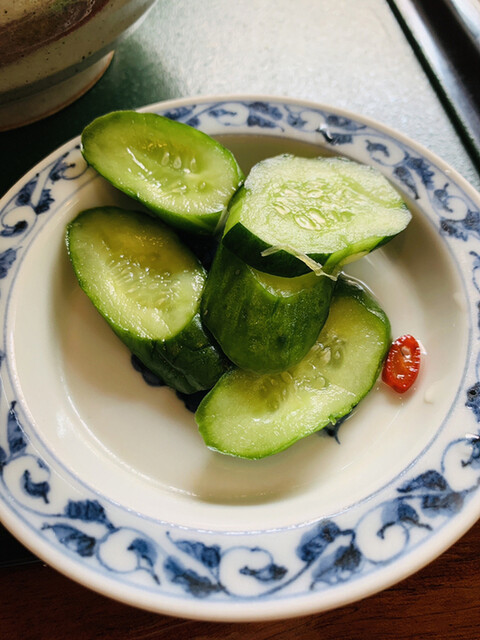 きゅうりとみょうがの漬物が良い箸休めとなり、最後はそば湯で〆て完食です。
