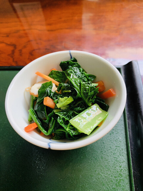 青菜とニンジン、チクワのお浸しや漬物で時々サッパリ口直ししながらつゆも飲み干し完食。