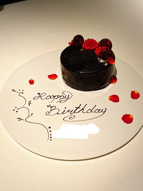 お腹いっぱいでその場では食べられなかったため、こちらはお持ち帰り。表面には薔薇とチョコレートプレートが乗せられ、チョコレートコーティングの下にはフランボワーズとトリュフが混ぜ込まれたムースの2種。ホールケーキですが、クリームでなくムースが主体なので重たくなく、全体的に軽やかな仕上がり。チョコレートは見ての通り濃厚なので、物足りなさはなく、満足度も高いずるい美味しさなケーキ。