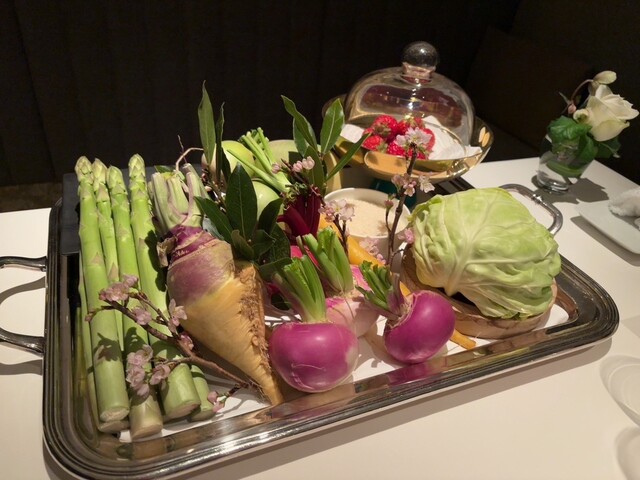 いったん小休止目的も兼ね、ここで野菜がワゴンで運ばれて、綺麗にテーブルに並べられます。