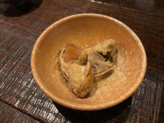 まずは胃を温める、牡蠣出汁たっぷりのスープ。見た目は素朴なスモークチーズも、牡蠣のオイル漬けに浸された牡蠣エキスしみしみで、最初から心を掴まれます。さらに「剥いている間の箸休めに…」と出された牡蠣のなめろうが本当に美味しくて、、、潰しすぎず食感を残し、薬味とのバランスも完璧でした。