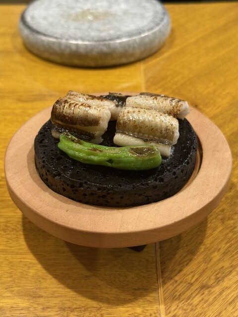 中盤の「穴子の溶岩プレート焼き」は、旨みを逃さずふっくらと仕上げられた逸品。