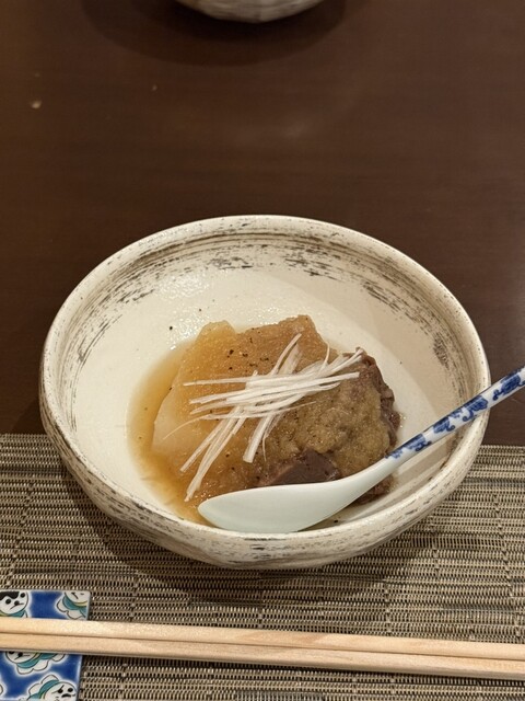 温菜の和牛すねと聖護院大根のみぞれ餡かけは、とろけるほど煮込まれた牛すねと、出汁をたっぷり含んだ大根が絶品で、最高級おでんのような美味しさ