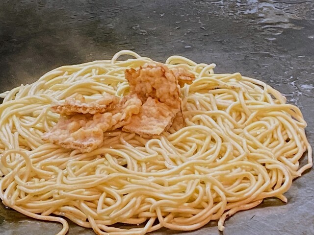 別場所で野菜(キャベツ もやしもか?)お好みを焼く