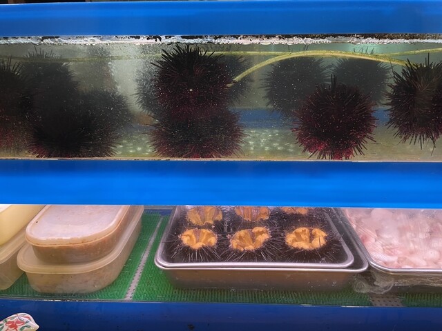 帆立 鮑 真ツブの水槽 シーズンになれば雲丹も入ります