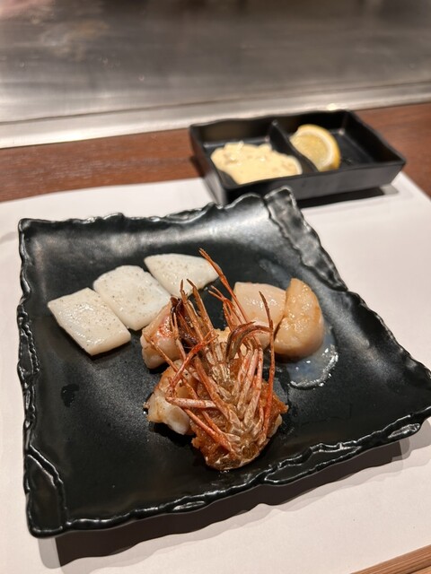 立派な有頭海老と帆立と紋甲いかを丁寧に焼いてくださり、どれもうまー