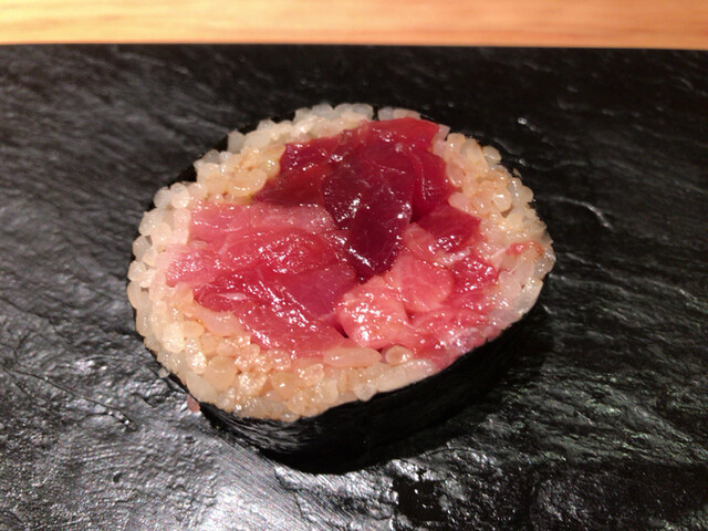 初の個室でいただきました。あらい親方ではなくたけるさんの握りです。つまみからのスタートで梅の茶碗蒸しなど面白いものもありあん肝が大変美味しかったです。握りは何と言っても鮪です。漬けもあり全7種巻物もいただきました。美味しいです。その他も美味しいのですが中でもあん肝の握り美味しかったです。お昼からお酒もたくさんいただき美味しく楽しいお鮨ありがとうございました。