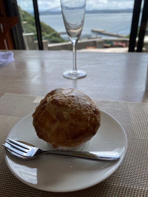 店では、コース料理が順番に、13時10分発のフェリーの時間に合わせるように、出されます。