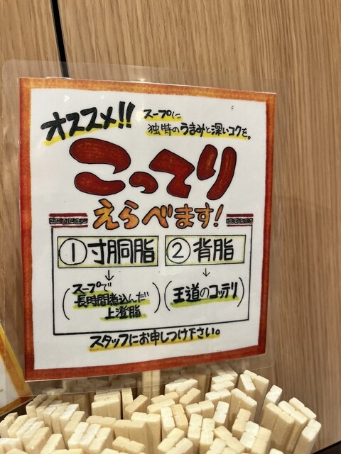 こってりは寸胴脂の方が塩気は強めでしょうか、その分締まった味に感じます。背脂よりやや罪悪感は低め、脂の旨みにキレとふくよかさが感じられます。こってりは寸胴をスタンダードにしようかな。たまに背脂にして罪悪感を浴びたいかもです。運良く奥のテーブルでゆったり座れました。今日もとっても楽しかったー!ご馳走様です。