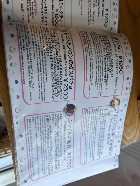 ソースは自家製で作り上げ自信を持って提供。紫いもは絶妙な甘さ。甘すぎず丁度良い。色も食欲を誘う。ティラミスは甘控えめながら飽きはこない。かき氷は一層目でソースをしっかりかけ、二層目に上にあり、最後まで味が薄くなることはなかった。