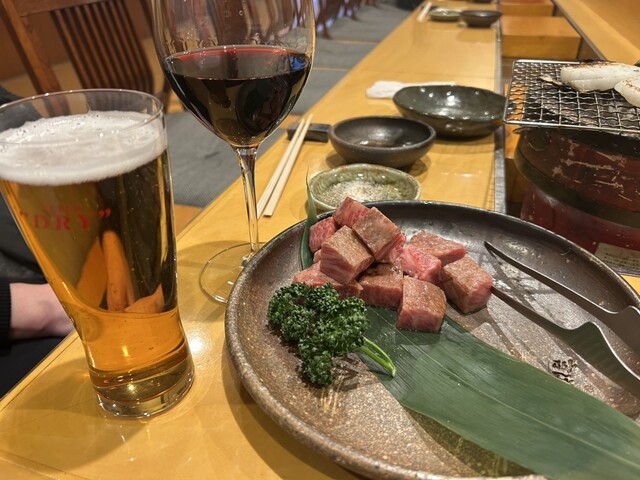 飛騨牛をサイコロにして,コロコロ各面を焼きながら、肉汁を中に留めながら、塩で食す。肉を塩で食べる旨さは吉洋で覚えた。椎茸を裏返すことなく、椎茸から出てくるエキスが溢れてきたら食べる旨さも吉洋で教わった。