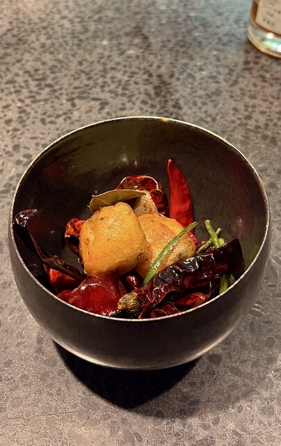 本来は白子の麻婆豆腐ですが、辛さ控えめにとシェフに話すと、じゃあ炒飯にしましょうかと提案していただき、ではとお願いしたのです。