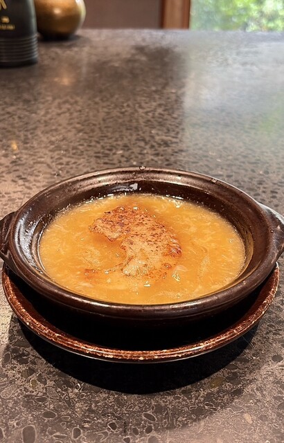 グツグツとしながら登場するこちらも定番料理、焼いた鱶鰭が芳ばしくカリッとした食感が秀逸!