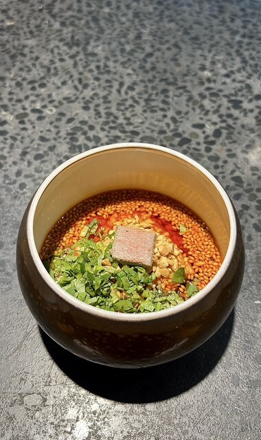 ◆ 山椒麺 よだれ鶏のタレに麺投入