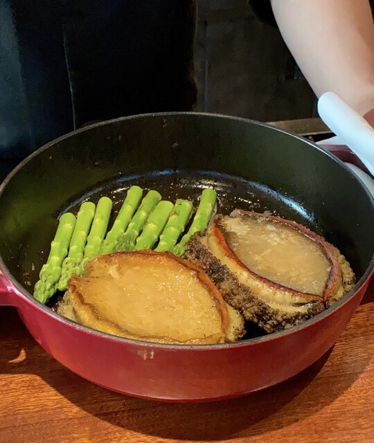 肝ソースでアスパラと鮑を交互に楽しんでしまいました。