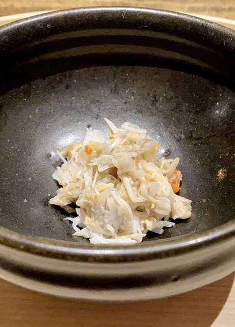 浜名湖ドウマンガニの雌 内子は使わずに身だけですが、甘みがありクリアな味わい、ガザミがこんなにも美味しい蟹だと初めて知りました。 火入れ良く蟹の味わいだけで充分に美味しくいただけました。