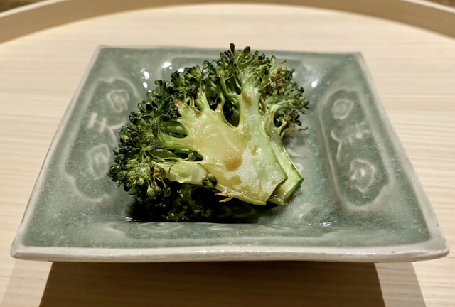 ブロッコリー シンプルに炭火を入れさっと醤油の様なタレをひと塗り、野菜の味が濃くその美味しさを実感できます。