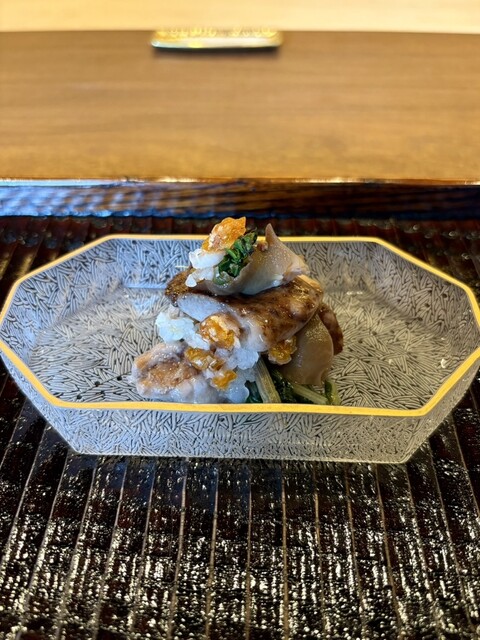細かな包丁を入れ繊維を断ち切り、それと同時に舌に直接甘みが感じられる仕立て、ねっとりとして美味しいです♪