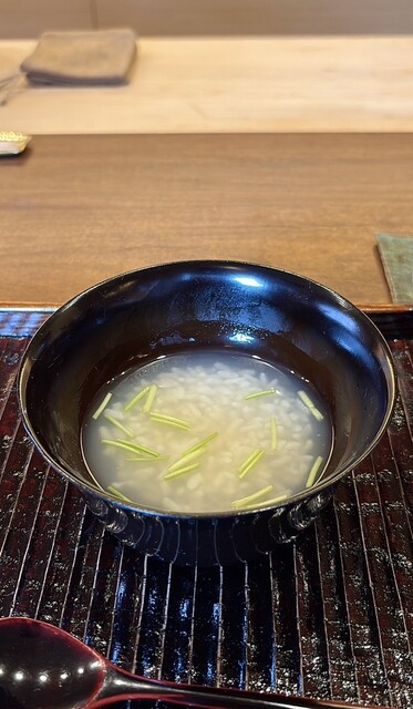 白子のすり流しに少し白味噌を混ぜていますが、甘みは極ほんのりと、なめらかな口当たりがお腹に優しい味わいです♪