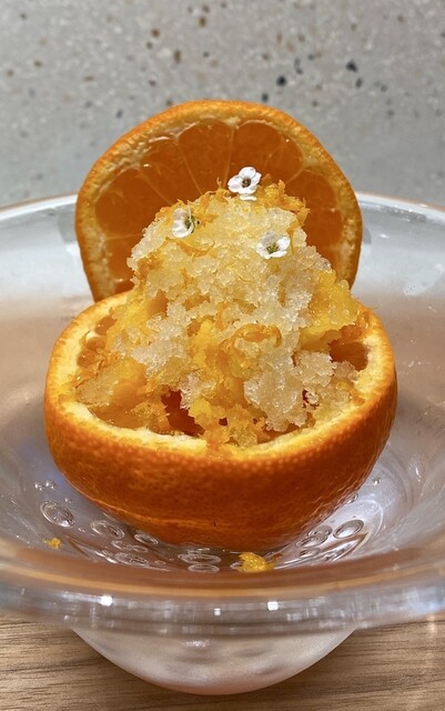 仕上げに上から花良治(けらじ)みかんを削りかけて完成。