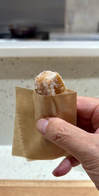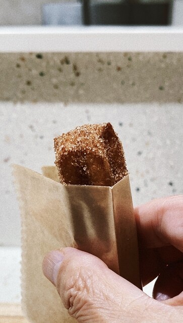 シュトーレンをイメージされたチュロスは、八角やシナモンの香りにレモンを取り混ぜたフレーバー、スパイス感も少し感じながら、揚げたて熱々をパクッとしました♪