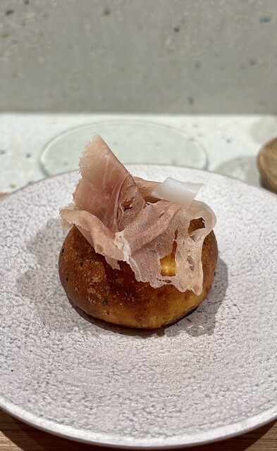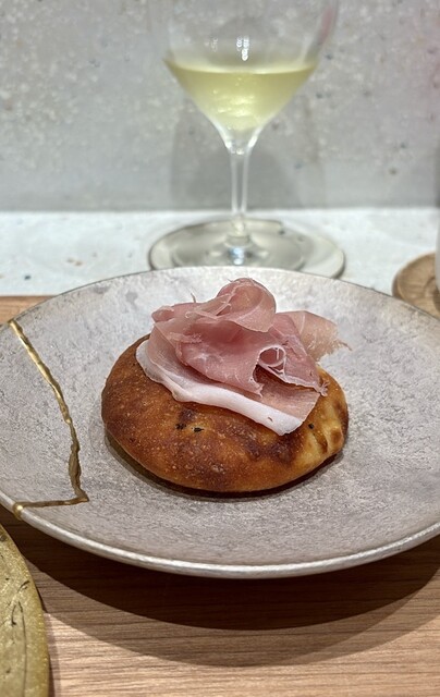 極薄にスライスされたフランス産生ハムの塩味が、フォカッチャの中に忍ばせた栗にピッタリ!