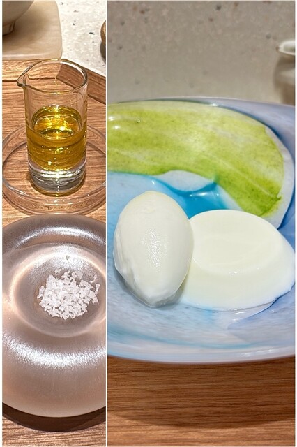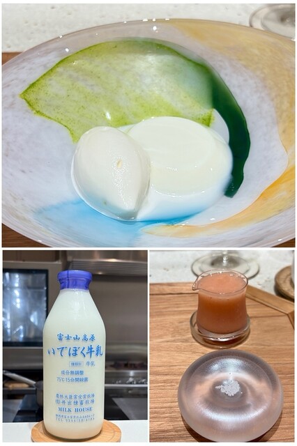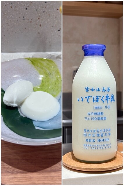 静岡県富士宮市の『いでぼく』さんのミルクを使ったミルクプリンとミルクジェラート、今回合わせるのは熟成したオリーブオイルとお塩。