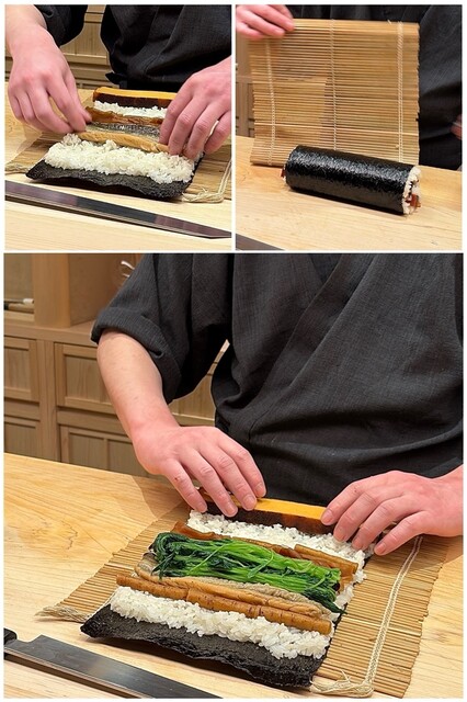 穴子、たまご、干瓢と、おすしの締めを一つにまとめた太巻きは、食べながら口の中で味が変化するのです!