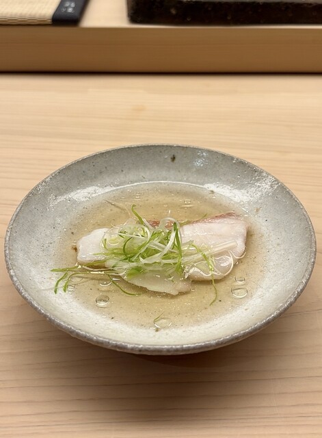 小肌のスープ(小肌の身と昆布出汁のみ) まさに西麻布の蒼さんを彷彿させる味わい美味しさ! 陸さんが峯村シェフ直々に教わっただけに、味の深みには驚くばかり!