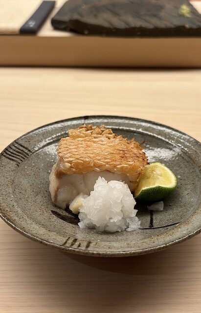 虎河豚の白子 醤油が焦げて芳ばしいです♪