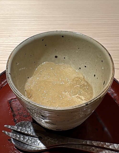 温かな葛餡をかけた蛤、身がぷりぷりとして強い旨みがあり、葛餡の昆布と鰹出汁の味わい良く実に美味しいです♪