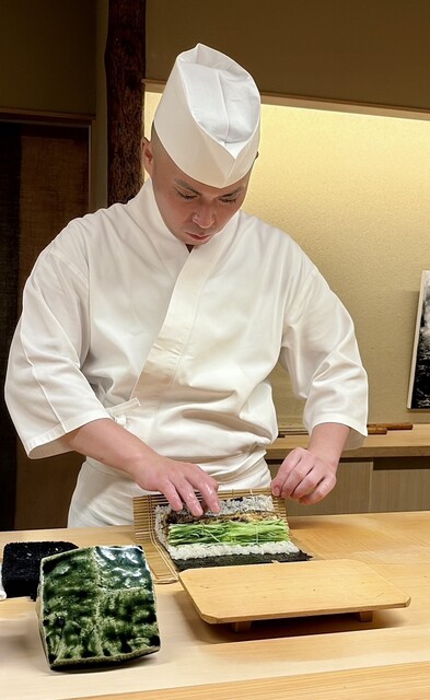 イサキの棒寿司 小田原で朝取れ 小田原で朝取れした魚介を、麻布十番まで運んで来られる仲買いさんの存在の恩恵は大きいです! 海苔は千葉産、少し厚みがあり風味味わい共に良いです♪