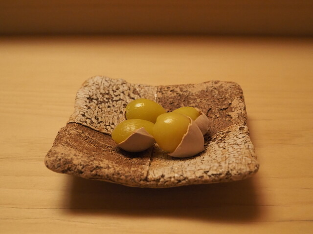 大ぶりの銀杏。ホクホクとした食感と程良い強さの風味で、スナックのように楽しめる。