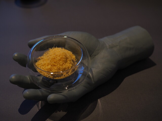 赤肉メロンのエアーアイス、マリーゴールドとホワイトチョコのパウダー
