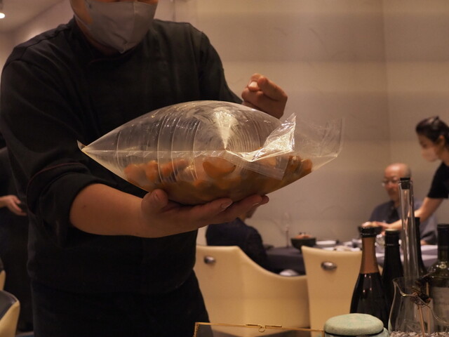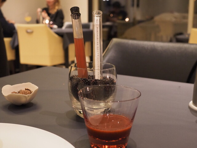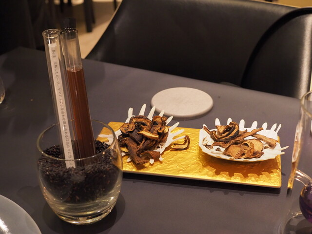 ・ガストロバック(減圧調理器)を駆使し、食材に様々なニュアンスを加えています。細胞レベルで2つ以上の食材の旨味が合体しているため、既存の調理法では食べられないような独特の味が楽しめます。