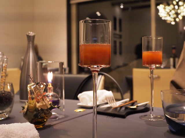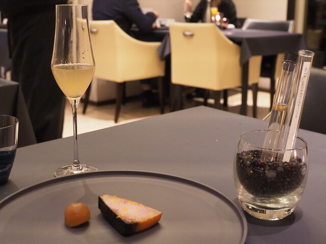 ・前回と同じくディナーで、友人はアルコールペアリング、私はノンアルコールペアリングをオーダー。選択制のメインは今回は牛肉にしました。