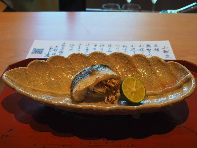 富山の名産であるあんぽ柿を紅白なますと併せて頂く。柿は苦手な部類だったが同店のものは別次元の美味しさであり、ハレの日に相応しい華やかな味に感動を覚える。ペアリングはノンアルコールのセレブレが白眉であり、ノンアルコールとは思えないコクがあんぽ柿を更に奥深く昇華させる。