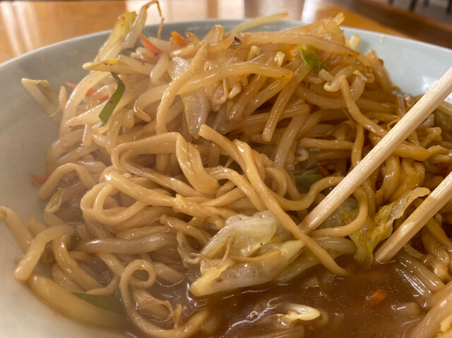 キター‼️焼き大は焼きそば大盛りの事。大量のモヤシに麺が、もちもちで、スープが酸っぱい^_^これがハマると中毒になる❣️禁断症状発症中なので超美味い‼️