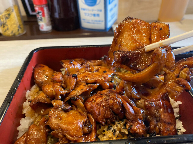 タレがかかった鳥重。この香りとタレはご飯に最強‼️