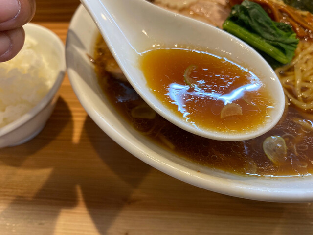 醤油ラーメン大盛りと初めて小ライスも一緒に食べて、