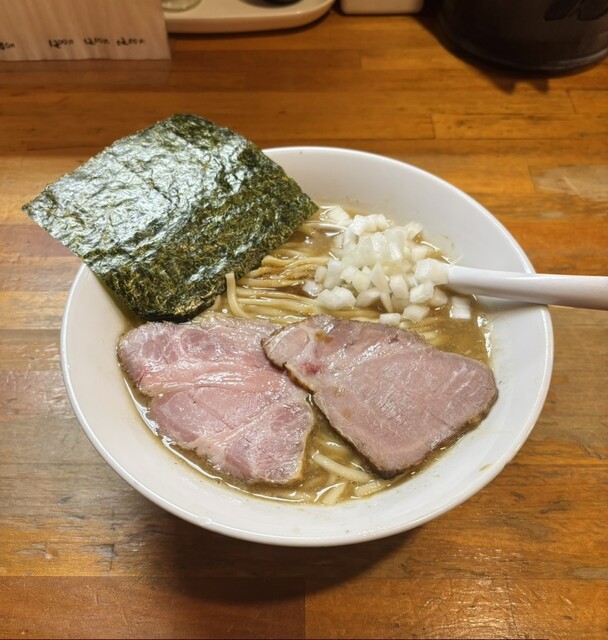 トッピングはチャーシュー2枚・刻み玉葱・海苔。安定の神チャーシュー。玉葱の甘みはスープと相性抜群。有明海苔の風味はとても良いですね。これがあればいくらでもご飯が食べられそうです。