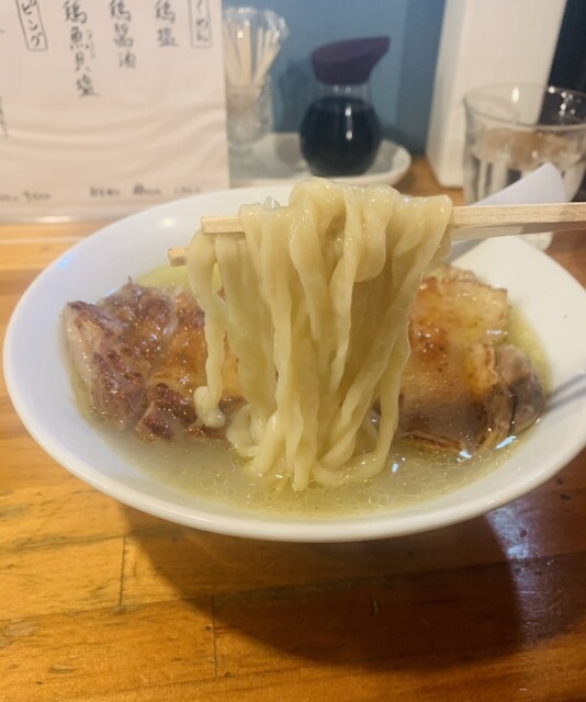 スープは地鶏と豚骨の醤油白湯。こちらも濃密で美味しいのですが、店主さんも仰っていた様に塩だけで完結しているので、今回はおまけの様な扱いです。