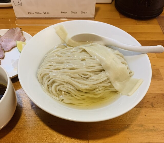 この日の自家製麺は柔らかくツルモチ食感の中太麺。鶏の旨味と鶏油を纏って大変美味しいです。