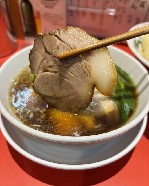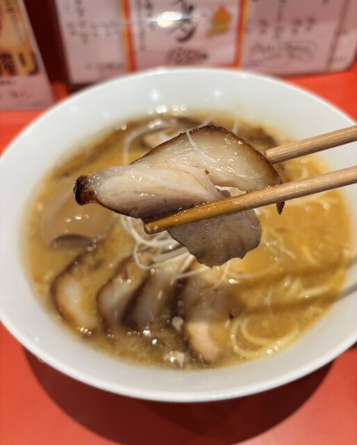 トッピングは霧島高原ロイヤルポークのバラと肩ロースチャーシュー・ワンタン3個・葱・穂先メンマ。チャーシュー、ワンタン共に肉の旨みを存分に堪能できる仕上がり。香りの良い葱、柔らかなメンマと一部の隙もありません。