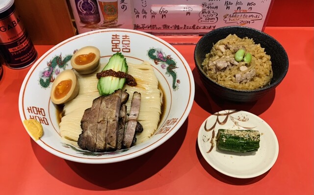 かごしま黒豚の焼き豚冷し中華+鶏めし ※自家製漬物付き(2,030円)