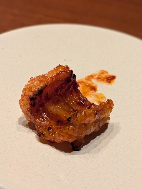 ハラミは塩でさっぱりと、赤身のシンシンはにんにく×九州醤油のタレでしっかり。ホルモンは3つのタレで食べ比べしながら、部位ごとの食感の違いを楽しめるラインナップ。ひとつひとつが丁寧で、食べ進めるほどワインとの相性が際立ちます。