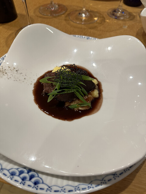 シフォンサレの上にマッシュルームとチベット産の黒トリュフペーストがのせてあり、この小さいサレを口に入れるとトリュフの香りが鼻に抜けて、このスパーリングがよく合いました。