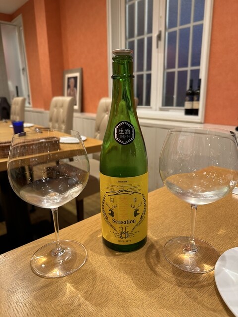 『笑四季』Sensation 純米金ラベル生酒をいただきました。酸を感じますがフルーティーで美味しい…。イタリアンに合う日本酒最高!何杯もおかわりしてしまいました。