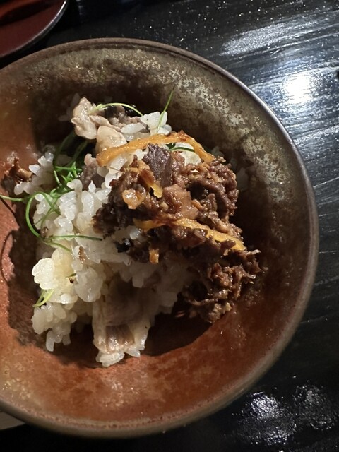 牛肉のしぐれ煮と合わせて食べるとトリュフの香りとお醤油味が口の中で混ざって最高!