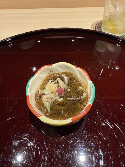 ◯岩もずく さっぱりとみょうがが絶妙な歯応えと香りが糸もずくに絡んで食感が楽しい。スッキリお口直し